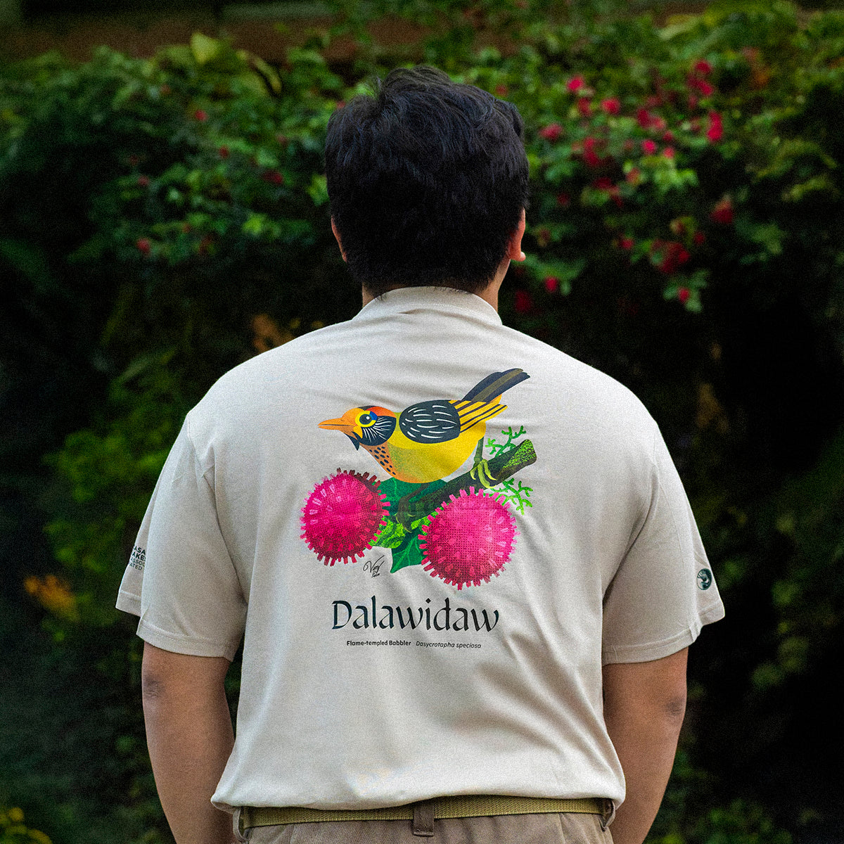 The "Hambalatok at Dalawidaw" graphic tee, illustrated by Vinz Pascua, was made in special collaboration with Balinsasayao Twin Lakes, featuring the Philippines’ rarest and most colorful woodpecker and babbler species.